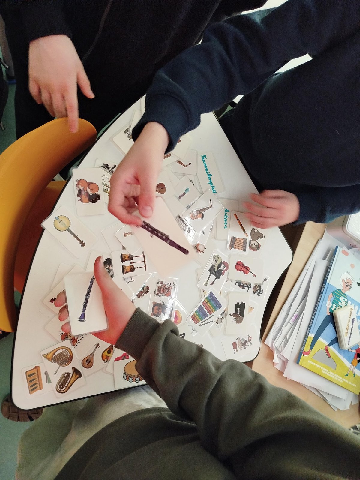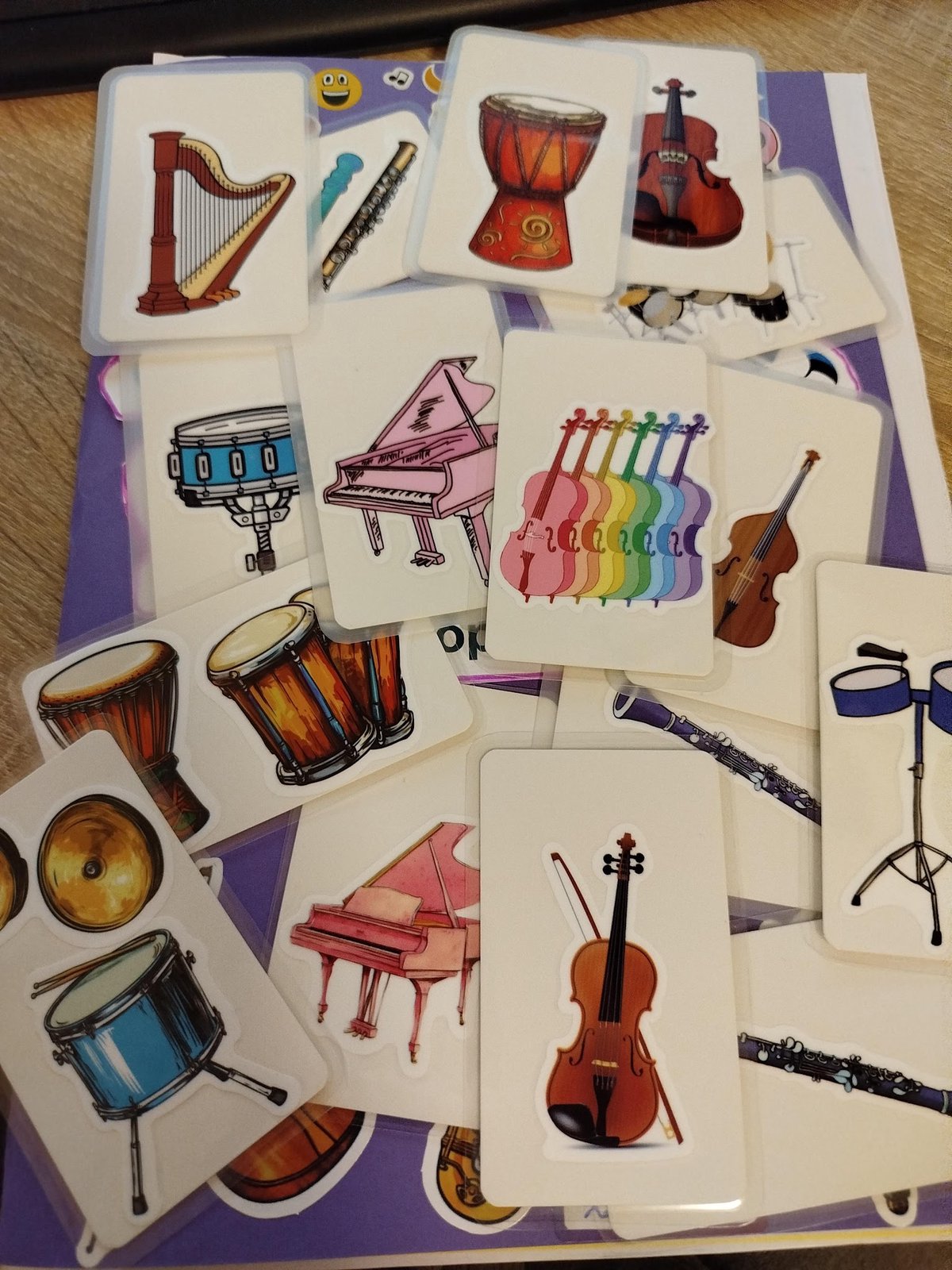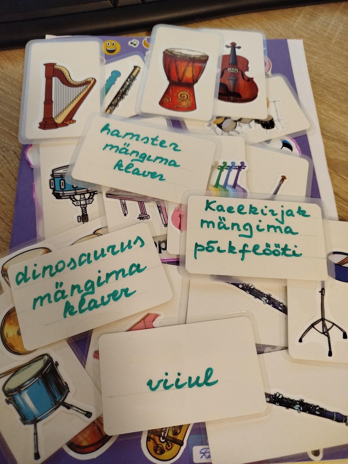 Praktilise näitena kasutan pillikaarte, kus ühel küljel on pilt instrumendist ja teisel vastav mõiste. Õpilased kuulavad muusikapala, määravad kõlava instrumendi ning moodustavad kaartide abil lauseid. See tegevus ühendab kuulamisoskuse, mõiste mõistmise ja keelelise väljenduse.